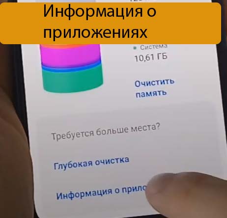 • Открыть «Хранилище» и далее «информации о приложении»;