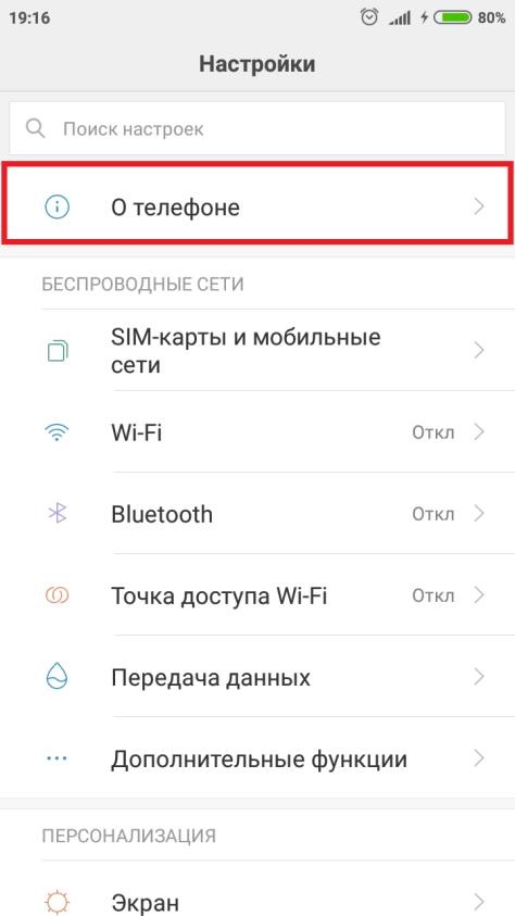 - Для начала зайдем в главные настройки смартфона, там переходим по строчке (О телефоне)