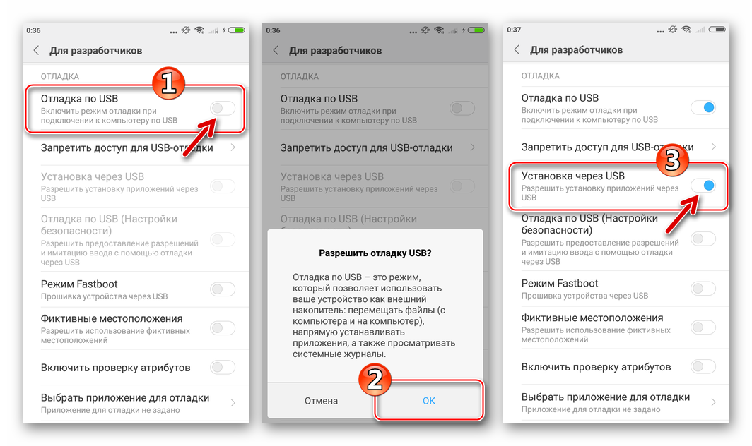 Входим в режим разработчика, и включаем USB в Xiaomi redmi note 4